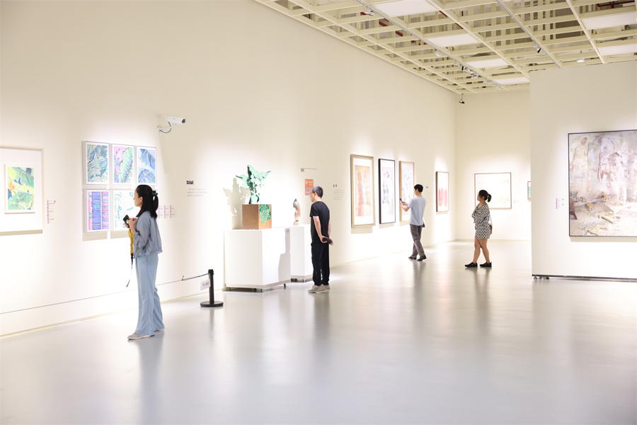 本次展览汇聚了40多位来自全国各地的优秀女艺术家,涵盖老中青三代,约160件精品力作,囊括多个艺术门类,展现当代中国女性艺术家的创作风貌与艺术成就。展览以“绘:诗意江山”“抒:家国情怀”“歌:时代芳华”“赞:大爱无疆”四大版块展开,从山河咏叹到人间烟火,从历史回响到未来想象,全方位、多维度地展现了女性艺术家如何以画笔诠释时代、以心灵感应人民。