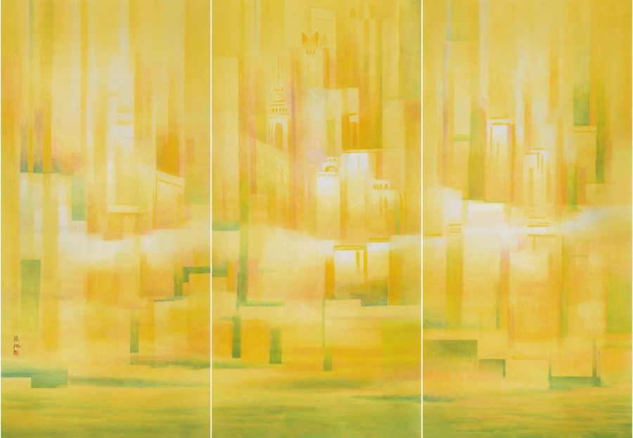 张弛,都市之光 240×115cm×3 2024 纸本设色