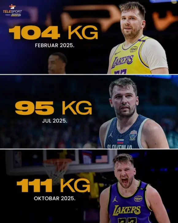 近日,欧洲媒体Telesport上传了一张东契奇体重变化的图片,2025年2月104KG,2025年6月95KG,2025年10月111公斤,换言之东契奇又复胖了,短短4个月又长了16公斤,这可能吗?
