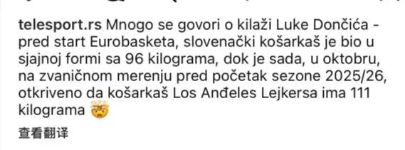 欧媒还在评论区写道:关于东契奇在欧洲杯之前减重到95公斤我们应该称赞,可如今十月份,在NBA25-26赛季开启之前,他又长到了111公斤。