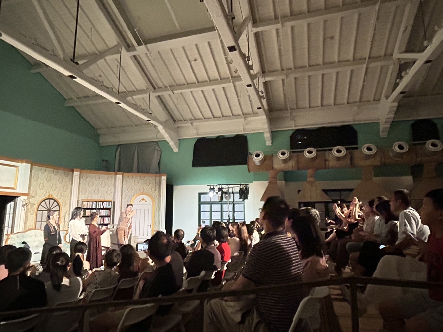 相比初试啼声的《耋戏生》,每年国庆与观众相约的上生·新所悬疑戏剧展演周已举办至第六届。今年悬疑周推出四部英国悬疑剧,连演25场,加上“早春乐事集”的80多家非遗、美食、工艺集市摊,国庆假期上生·新所每天有五六千人前来逛市集、看演出、品美食。工作人员表示,“在上生·新所百年历史建筑海军俱乐部和孙科别墅演出的英国悬疑剧,让欧式风格建筑与沉浸式伦敦西区戏剧相融合,吸引近2000名观众,每场演出的观众几乎都达到了限定人数。”